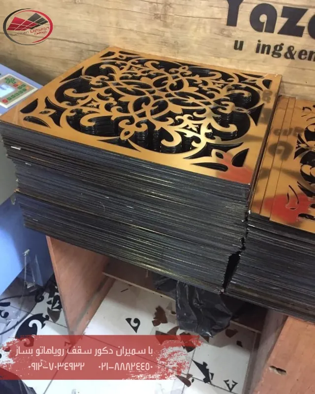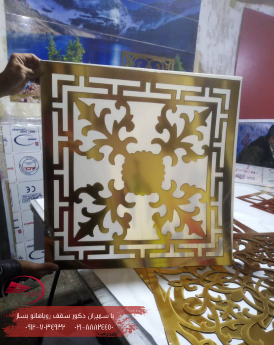 طرحهای سهبعدی (3D Patterns): طرحهایی با زوایای مختلف که عمق و بافت را به سقف یا دیوار اضافه میکنند.